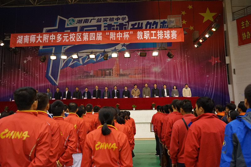 11月17日晚,经过一个多月的筹备,湖南师大附中多元校区第四届“附中杯”教职工排球联赛在广益中学正式拉开帷幕。在主席台前就座的有师大附中党委书记曾少华,师大附中副校长黄月初,师大附中党委副书记兼纪检书记、我校校长彭荣宏,师大附中工会主席刘邵来,附中高新实验中学校长康辛勇,附中博才实验中学校长苏建祥,附中星城实验中学校长陈克勤,广益中学校长兼党总支书记晏荣贵以及各校区党总支书记、工会主席。我校和师大附中、附中博才、附中星城、附中高新的男女排球运动健儿汇聚该校体育馆,参加了开幕式。