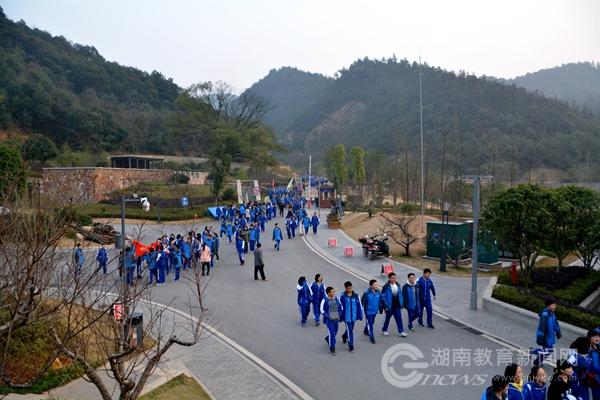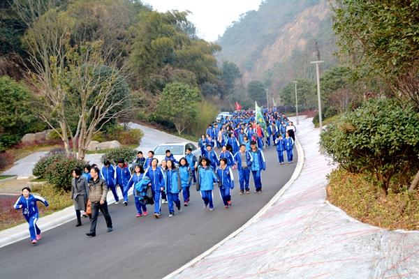 今天是2015年的第一次攀登桃花岭活动,1300余名师生齐出动,感受阳光行。桃花岭地形并不复杂,这样的活动并非偶然,而是师大附中梅溪湖中学每周三下午的必修课,东上西下路线已经成为惯例。全校师生分班级和工会小组组成了27支队伍,沿着桃花岭公园蜿蜒曲折的山路攀行,一路上,歌声、欢笑声,热闹非凡。因为距离非常近,桃花岭对于师大附中梅溪湖中学来说,就像学校的自留地一样,天时地利也就是如此了。