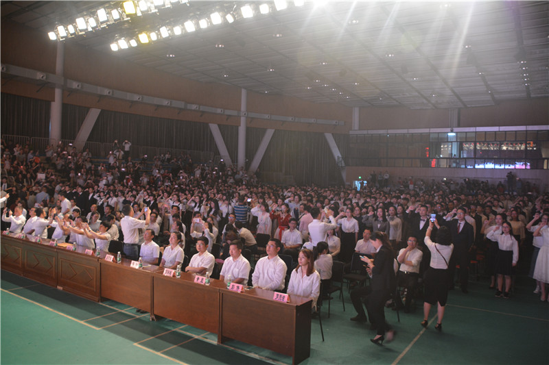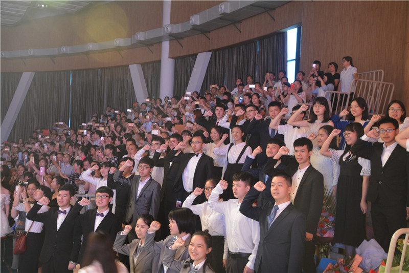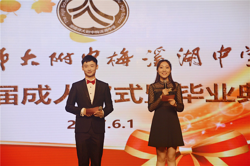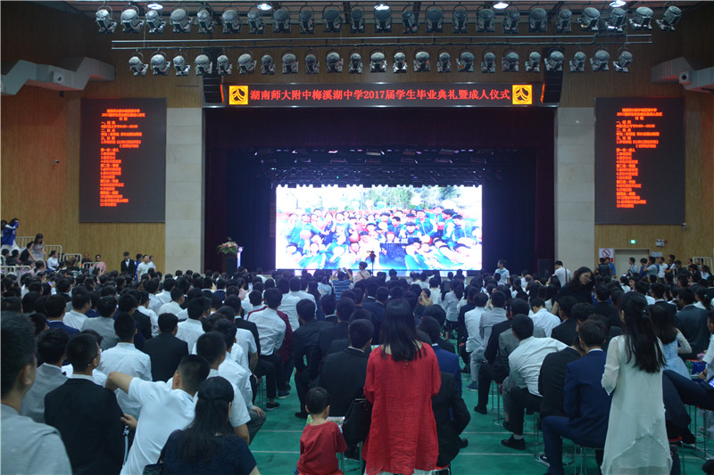 6月1日,我校2017届学生毕业典礼暨成人仪式在体艺馆隆重举行。校长晏荣贵,党委书记钟慧莉,副校长胡惠、张迪平、张志,校长助理屈雪辉,家长委员会主任周向东,全体中层干部,高三全体师生,职员、家长代表正装出席。毕业典礼暨成人仪式由学校教师柳诗扬和徐刈薇主持。