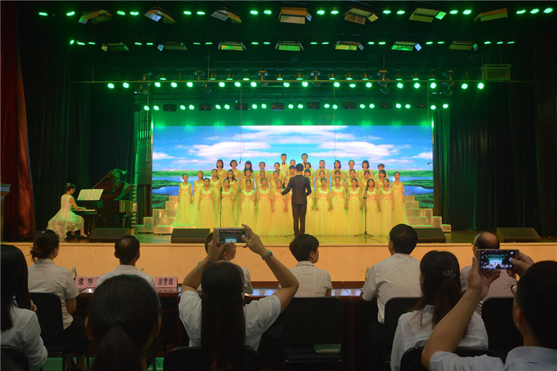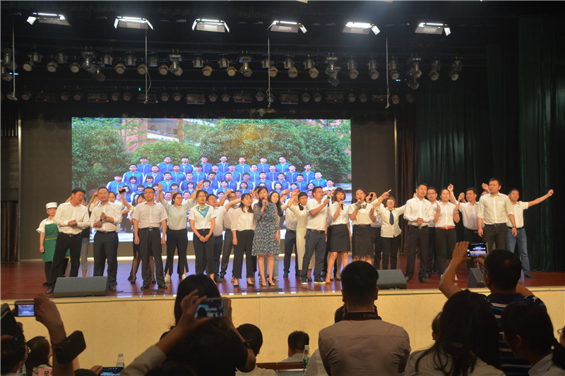 悠扬的校歌声缓缓落下,《来自师长们的祝福》纷至沓来,视频里学校领导的期盼,高三老师的加油,低年级学生代表易烊千玺同学的祝福,让台下的师生感动不已。随后,高三毕业生代表向母校赠送文化石,全体高三老师登上舞台,献唱《真心英雄》。学生代表向学校领导和全体高三老师献花道别。一声“老师,您辛苦了”,是学生们对老师感恩的最美情话;一句“孩子们,加油”,是老师对莘莘学子的殷殷期盼。