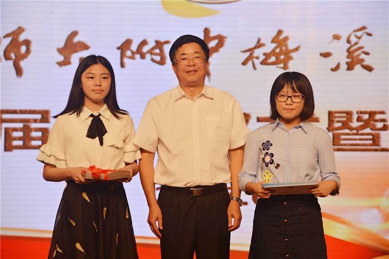 毕业生代表高1410班曾献智同学回首梅开三度的真情,豪迈地喊出“珍重三秋相伴,勇佩长剑奋战”。道一句“儒雅大气的师梅学子,应传承禹之谟将军的壮志,学习朱镕基总理的勤勉,仗人格之利剑,开浩渺之无极;无愧自己,无愧母校,无愧世人,无愧天地”与同学们共勉。