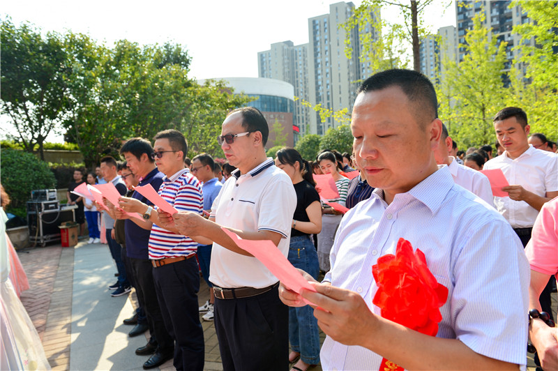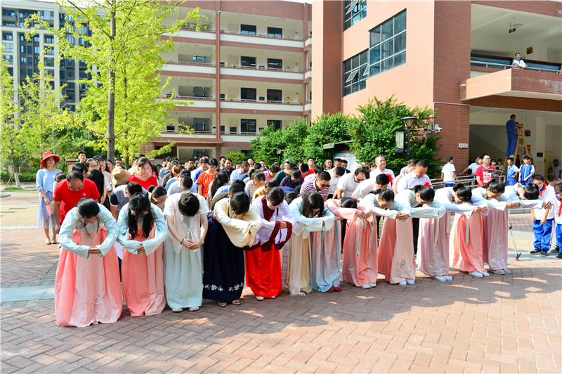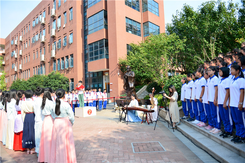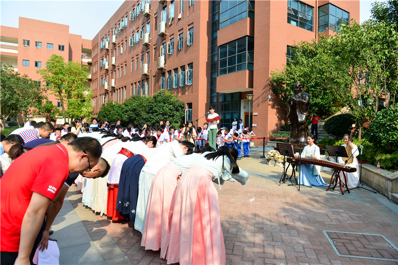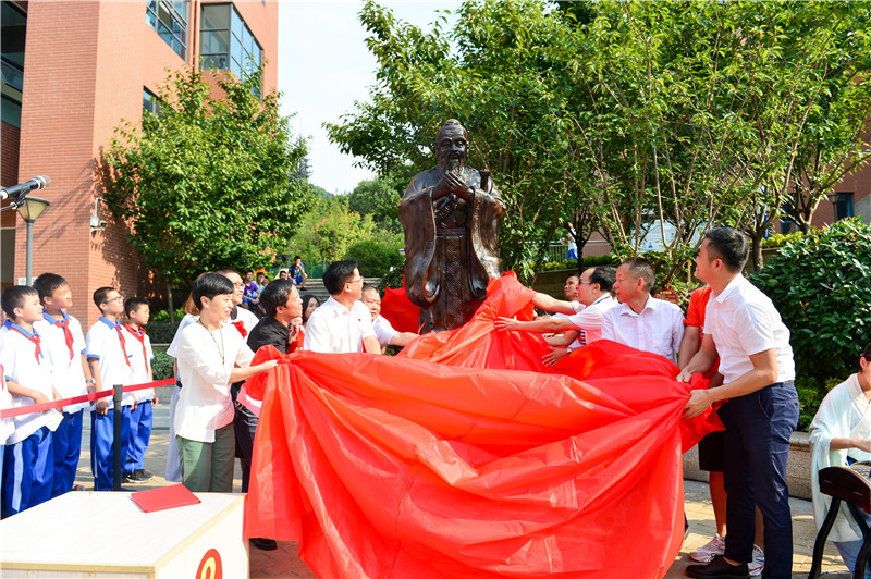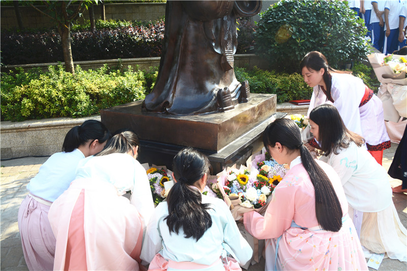 怀着崇敬和喜悦的心情,教师代表李文纲、2015级家长代表和学校领导共同为孔子铜像揭幕。师生代表向孔子铜像敬献鲜花,大家共同向先师孔子行三鞠躬礼。