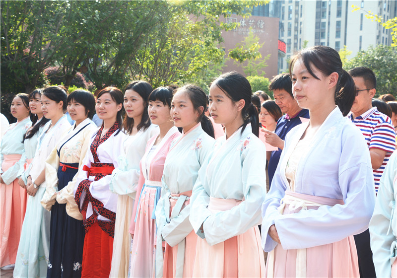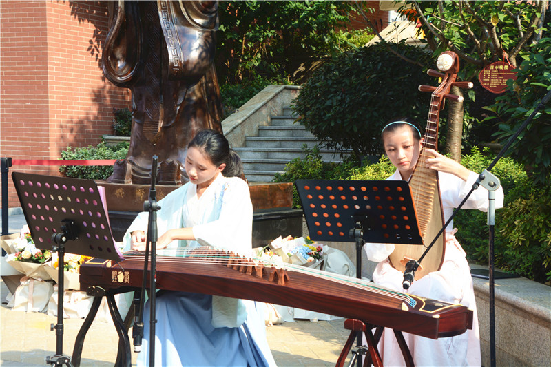 在孔子像前,为表达对先贤的追忆之思,伴着学生弹奏的古曲,在校长晏荣贵的领诵下,师生重温圣贤经典,诵读了《论语》十二则,表达了不忘先贤教诲,投身教育事业,努力刻苦学习的信念。