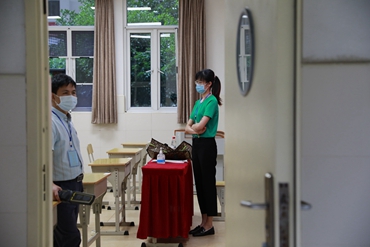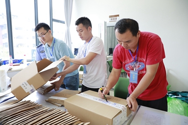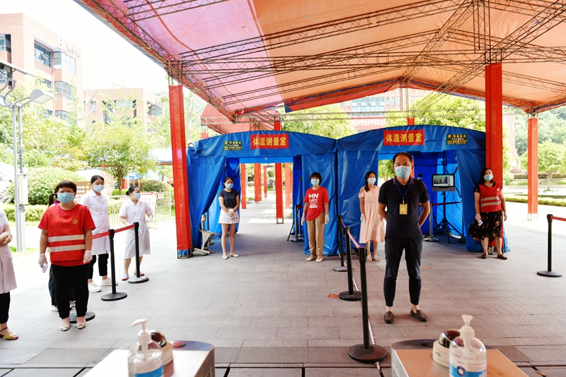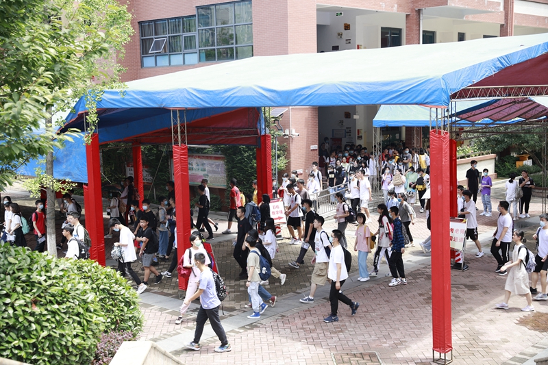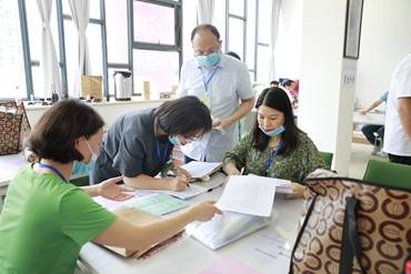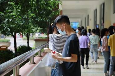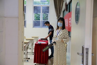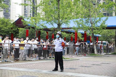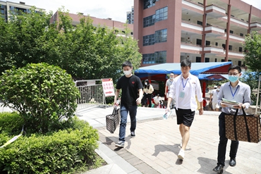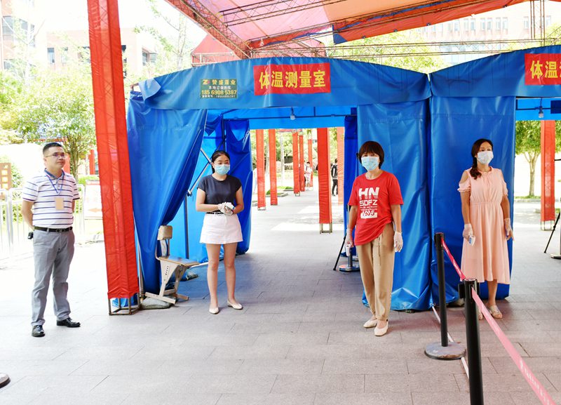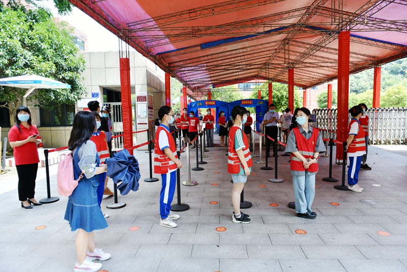 学校领导高度重视组考工作,以“平安学考、阳光学考、温馨学考、健康学考”为宗旨,“强规范”为重点,“零差错、零事故、零投诉”为工作目标,制定《考点考务实施方案》,于710日召开全体考务人员培训大会,精心部署各项工作。三天考试期间,考务组、监考组、保密组、信号广播组、视频监控组、设备组、保卫组、宣传组、后勤防疫组、身份证核验组、考场布置组、考场验收组十二个工作组,各司其职,精诚团结,为考生营造了良好的考试环境。各校送考教师认真负责,身着红色送考服,收发准考证和身份证,给学生们答疑、加油。党员志愿者、青年教师志愿者、学生志愿者也纷纷加入工作队伍中,竭力为考生服务。