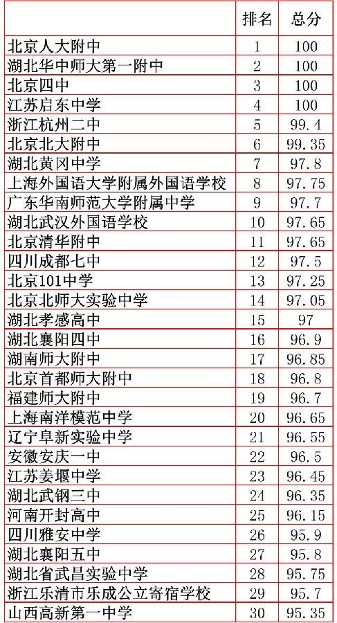美机构评选中国260大最佳高中(湖南师大附中排17名)