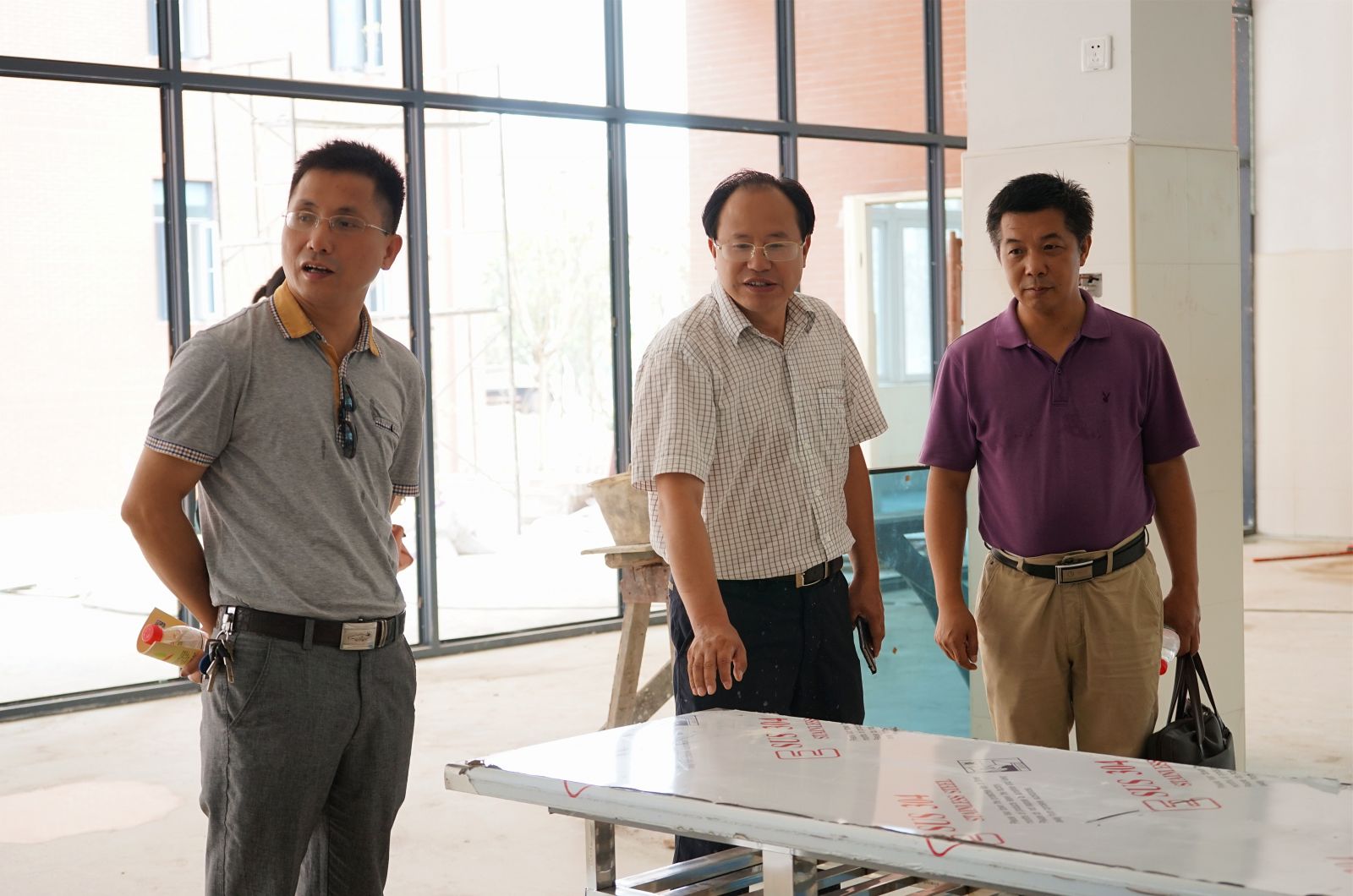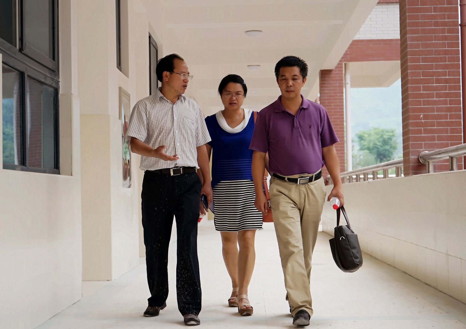 胡惠陪同客人参观了我校教学楼、艺体馆、田径场、学生宿舍等区域。邓立新、龙迎春高度赞赏了我校的整体布局规划和硬件设施。