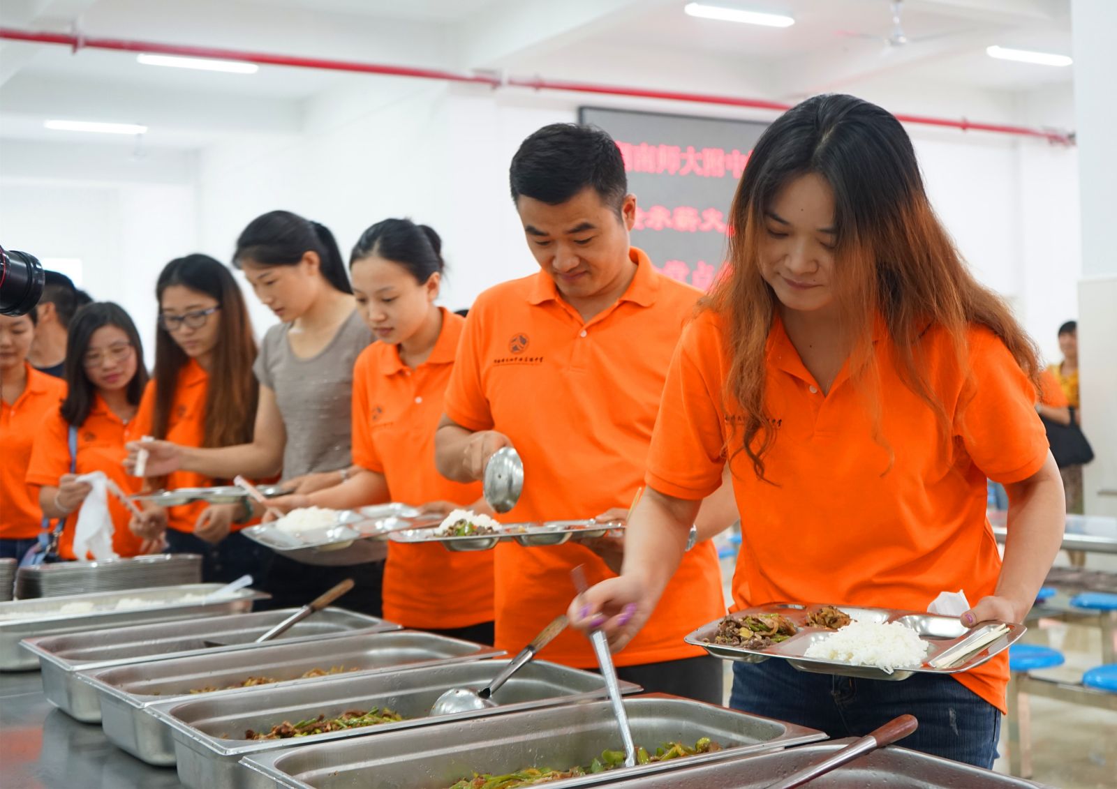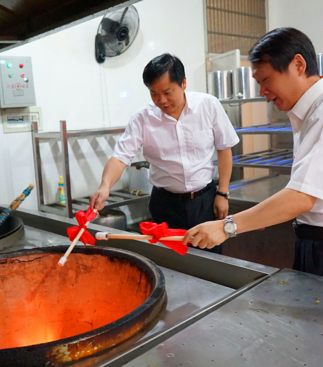 11时许,彭荣宏、钟慧莉手持点火棒点燃了食堂一楼的炉灶,我校食堂正式开餐。随后,全体在校教职员工一起在食堂一楼共进午餐,共同庆祝新学期到来。