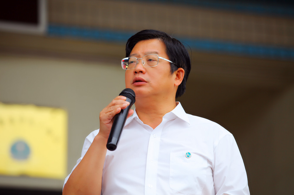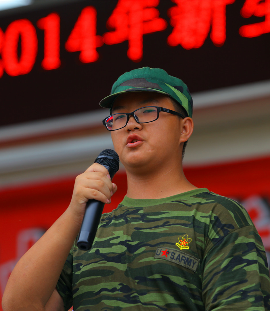 随后,进行了军训总结仪式。湖南师大附中高一年级组长李勇代表老师发言,我校林克荣同学代表新生发言。