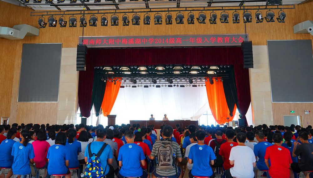 8月31日下午,师大附中梅溪湖中学高一新生在艺体馆接受了全面的入学教育。会议由教务主任、 高一年级组长张迪平老师主持,高一年级副组长李湘黔老师主讲。
