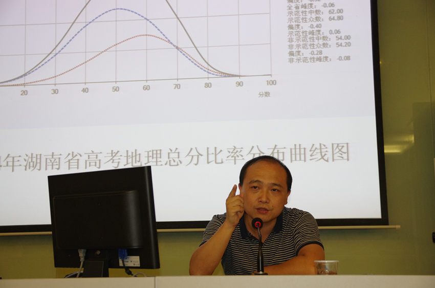 活动首先就试题研究进行了专题讨论,师大附中地理教研组长向超作了题为“2014年湖南省高考地理学科考生水平评价及对教学的启示”的报告,梁良樑地理工作室首席名师梁良樑作了“地理命题中的误区”专题讲座。