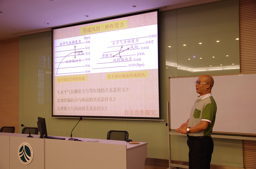 接着,多元校区地理组开展了“同课异构”课堂教学展示活动,附中本部朱丰年老师,我校吴海霞、彭雪峰以“大气水平运动”为题,进行了精彩的10分钟片段教学。我校教师与在场的优秀地理教师对该主题进行了热烈的评点和探讨。此次活动促进了我校地理教师对试题编制和评价及课堂教学设计的认识和思考,加强了我校与其他学校之间地理教学交流。