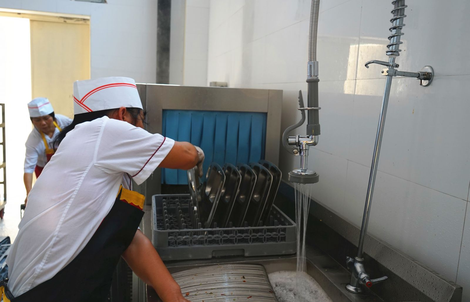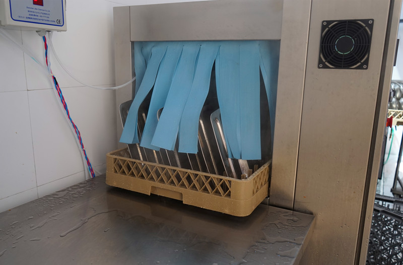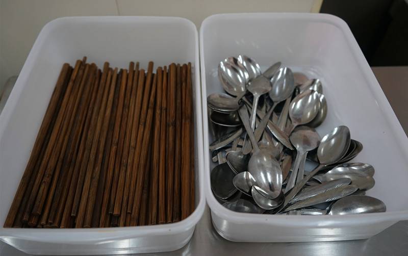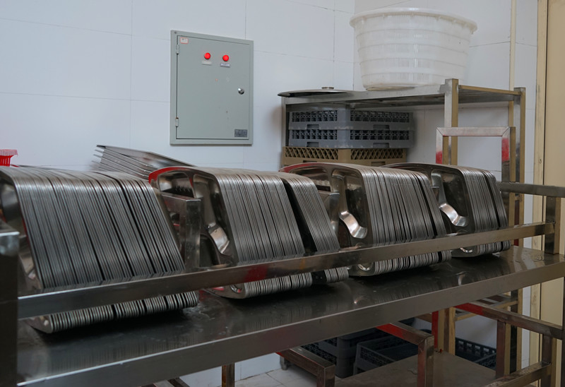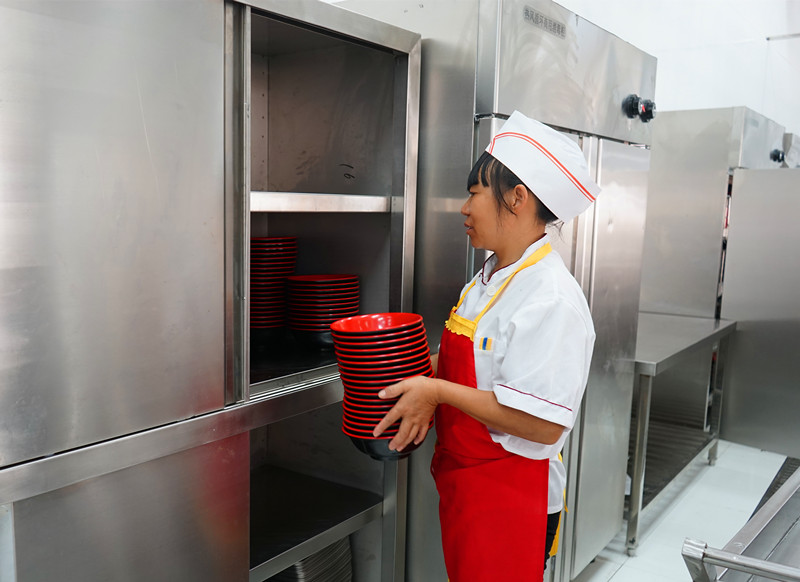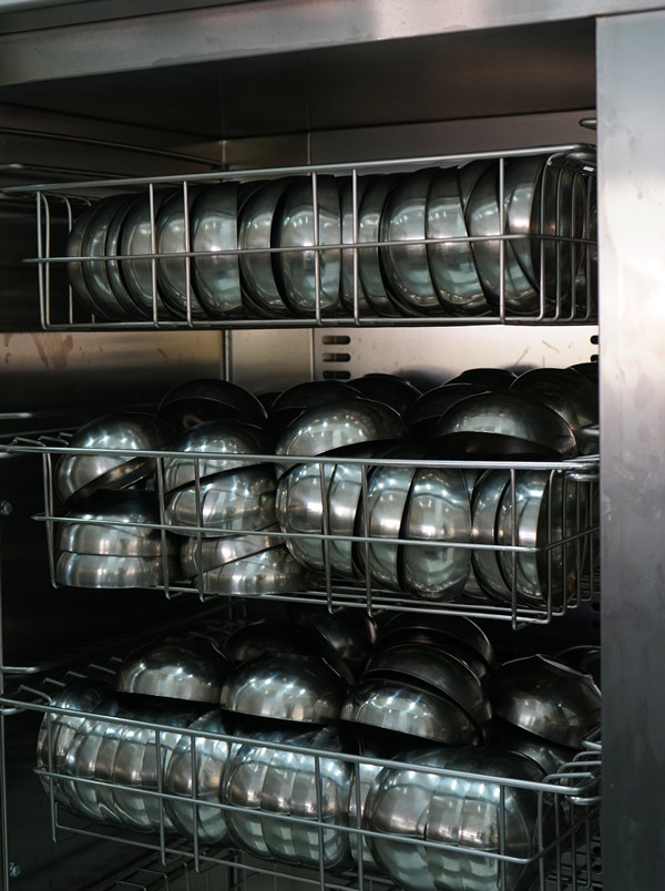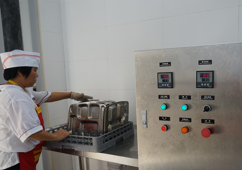 文明食堂 干净卫生 来源:校办公室 发布时间:2014-01-06 00:00:00 浏览次数: 次 【字体:小 大】 餐具第一次清洗:人工清洗 餐具第二次清洗:过机清洗 餐具第一次消毒:高温消毒 餐具运送 餐具第二次消毒:紫外线加热风循环 清洗消毒完毕的餐具存放进柜 筷子进蒸锅高温消毒 制度上墙 责任在心 食品储存 食品留样 分享到: 【打印正文】