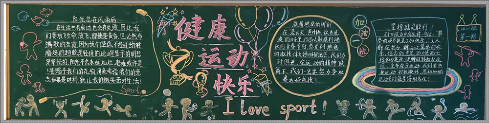 学校举行“我运动,我健康”主题黑板报比赛 来源:学工处 张娟 发布时间:2014-01-27 00:00:00 浏览次数: 次 【字体:小 大】 为欢庆首届聚彩彩票体育节,弘扬体育精神。近日,我校举办了以“我运动,我健康”为主题的黑板报比赛。 各班积极组织,集思广益,发挥特长,制作了一幅幅精美的黑板报作品。同时,学校团委和学生会组织对各班级的黑板报进行了全面检查评比。评比结果如下: 优秀黑板报班级 高一年级:1407班 1403班 1410班 七 年 级:1403班 1415班 1401班 1411班 1406班 分享到: 【打印正文】