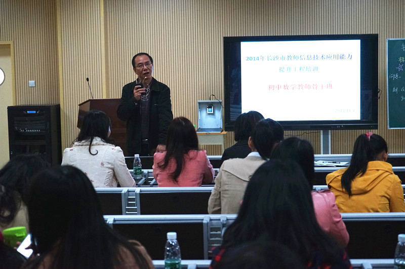11月4日上午,2014年长沙市教师信息技术应用能力提升工程培训初中数学教师骨干班的专家和教师一行50余人来我校开展教学观摩活动。