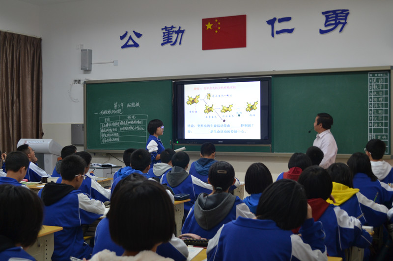 11月5日下午,我校生物特级教师胡平新在G1402班教室上了一堂特色教学互动公开课。胡平新在课堂上深入贯彻以学生为主体的思想,让学生自主探究。学生讲解的方式是本堂课的亮点。课堂既有学生的分析、质疑,又结合了教师的答疑解惑,充分发挥学生的主观能动性,很好地实现了本节课的教学目标。