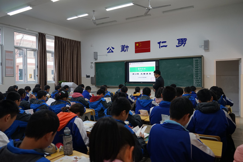 首先,大家一起在C1401班观摩了七年级历史组教师汪鹏带来的一堂历史课《三国鼎立》。