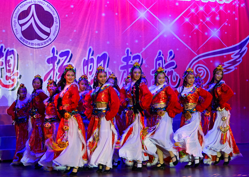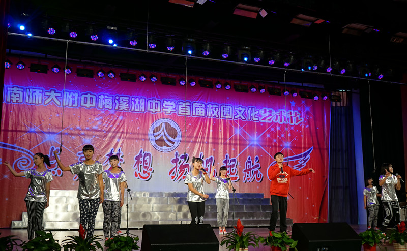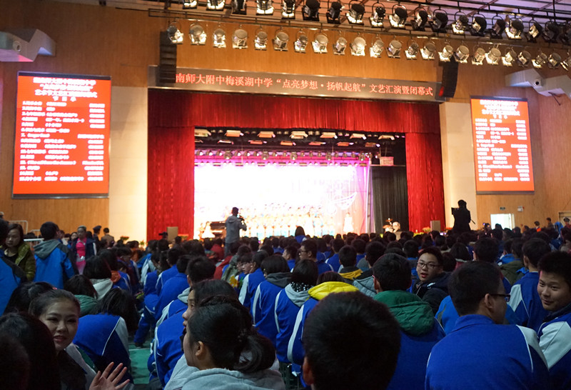 我校师生用歌、舞、器乐、曲艺、朗诵、书法、武术、魔术等丰富多彩的形式,完美演绎了全体师梅人青春激扬的精神风貌,展现了师梅学子的艺术素养。节目气势磅礴,激情高昂,精彩纷呈,现场观众如痴如醉,好评如潮,掌声、欢呼声不绝于耳。文艺汇演在高1404班带来的《库斯克邮车》的歌声中落下帷幕。