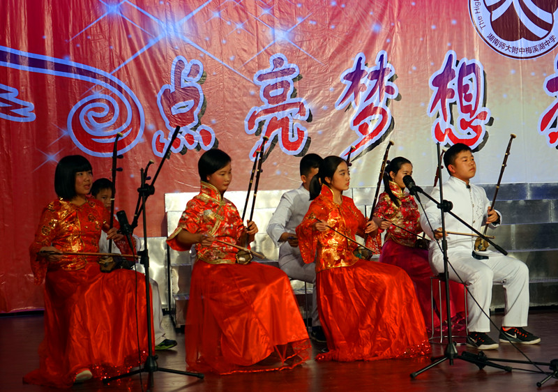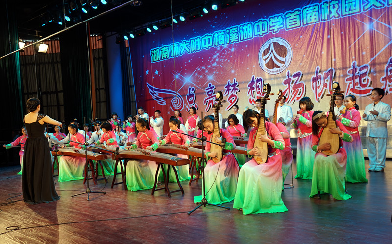 文艺汇演在校民乐团的一曲《花好月圆》中拉开序幕,整齐的演奏,优美的旋律使得会场气氛立刻变得非常欢庆而热闹。