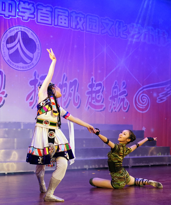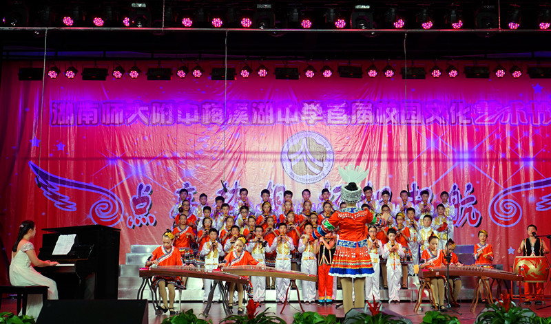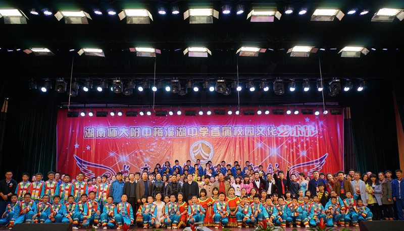 我校校长彭荣宏、党总支书记钟慧莉、副校长莫晖、副校长胡惠、校办副主任屈雪辉、教务处副主任张迪平、学工处副主任兼团委书记张志、总务处副主任王超、保卫处副主任胡田超,湖南师大附中艺术教研组李鹏程、熊康等出席开幕式,并与2000余名师生家长一同观看了演出。