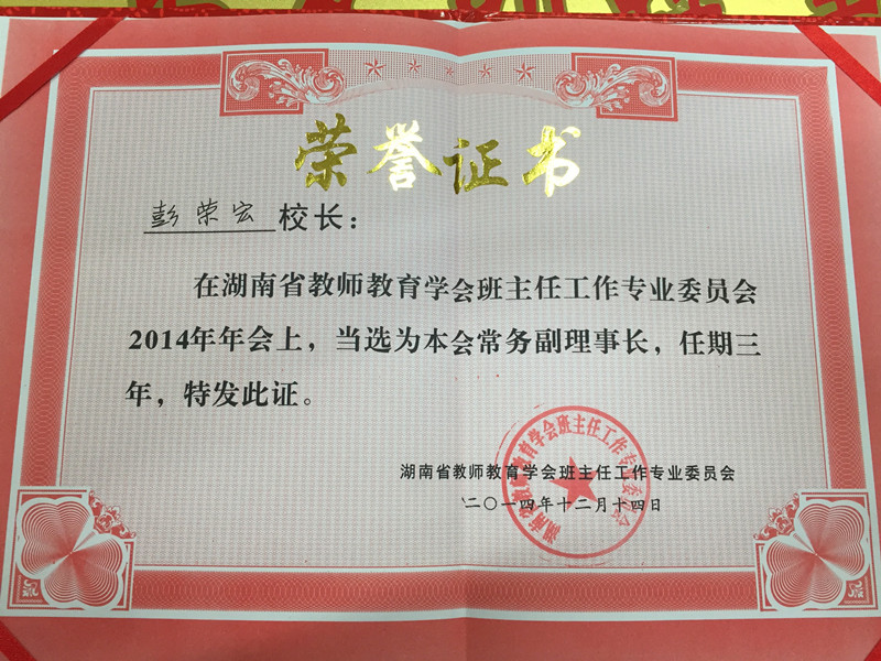我校被推选为省教师教育学会班主任工作专业委员会常务副理事长单位 来源:学工处 汪倩 发布时间:2015-01-05 00:00:00 浏览次数: 次 【字体:小 大】 近日,湖南省教师教育学会班主任工作专业委员会2014年年会暨全省第四届中小学班主任工作经验交流会举行。会上,我校被推选为湖南省教师教育学会班主任工作专业委员会常务副理事长单位,我校校长彭荣宏当选湖南省教师教育学会班主任工作专业委员会常务副理事长。 分享到: 【打印正文】