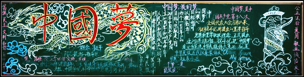 黑板报设计与制作可以培养学生的版面设计、信息搜集、信息处理的能力,还可以培养学生的创新能力、审美情趣及同学之间的团队协作精神。比赛过程中,学生以独特视角和全新创意,将充满激情、充满艰辛、充满希望的“中国梦”通过自己手中的笔、工具等进行形式多样的演绎,进一步了加深了对中国梦的理解。