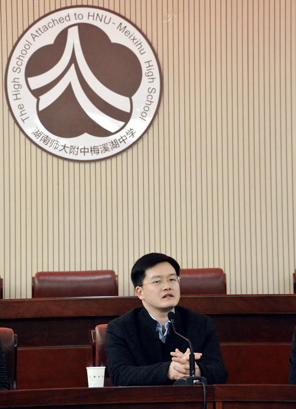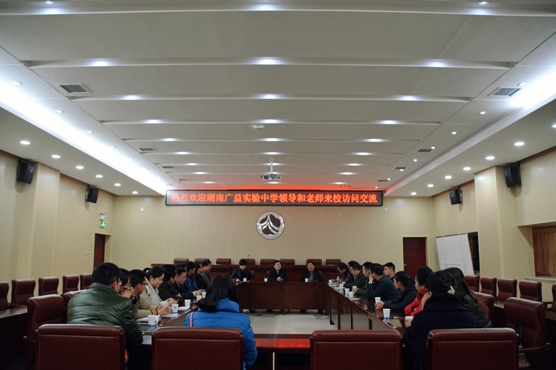 随后,两校的领导在图书馆一楼会议室举行了经验交流会。会上,彭荣宏代表学校对湖南广益实验中学客人的到来表示热烈欢迎,并简要介绍了学校的办学情况和发展情况。晏荣贵高度赞赏了我校的办学环境、办学理念和校园文化,希望双方加深交流合作。