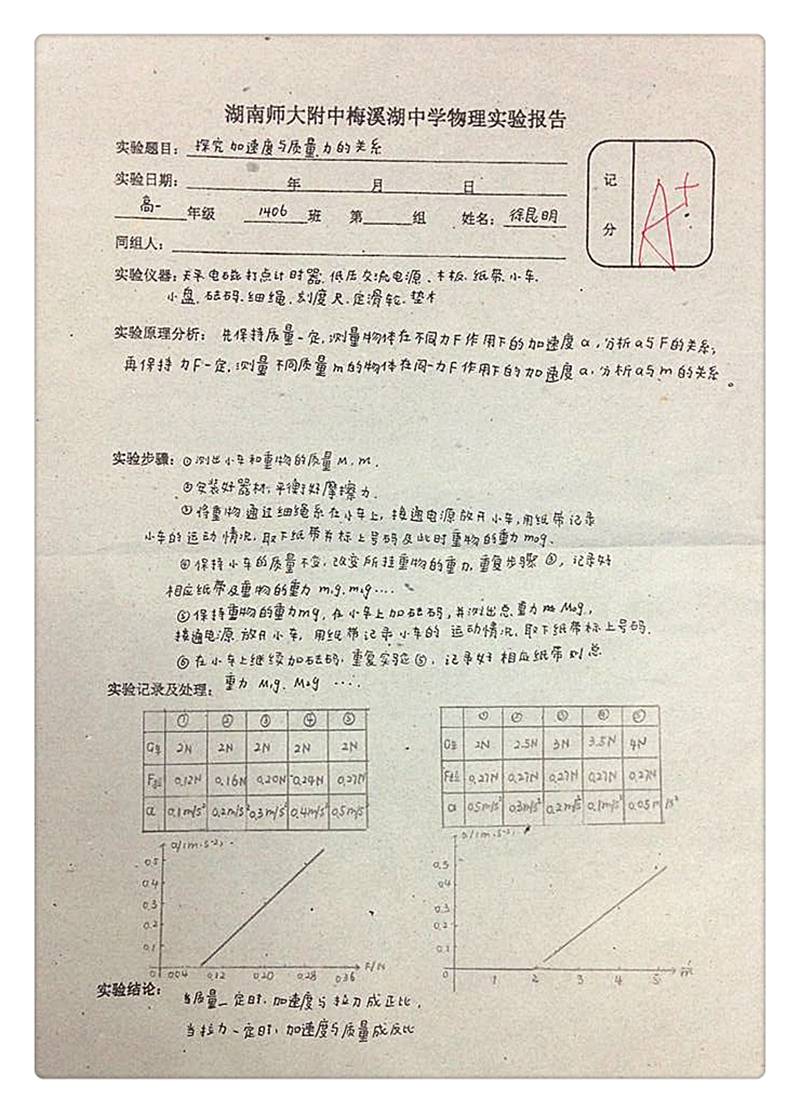 【高一年级优秀作业】物理 化学 生物