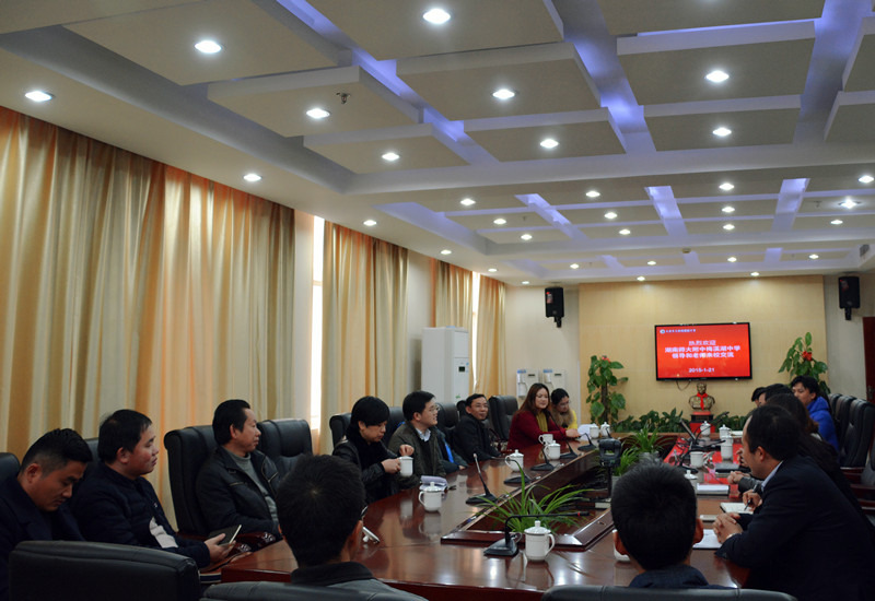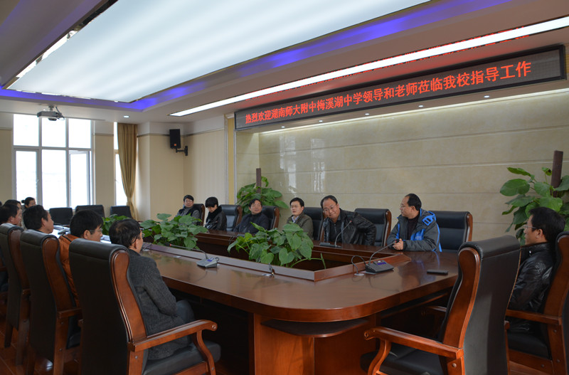周南梅溪湖中学校长叶双秋、党总支书记曹共平,长郡梅溪湖中学校长刘欣,党总支书记夏延刚热情接待了我校访问团。
