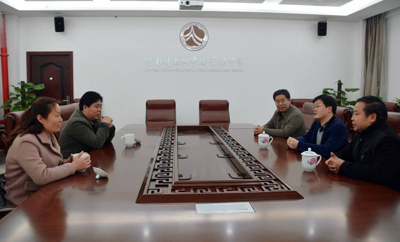 3月20日上午,长沙市教科院纪委书记、《湖南教育》(D版)执行副主编胡志华,长沙市教研员、《湖南教育》(D版)编辑、特级教师刘亚雄一行来校考察教育教研工作。校长彭荣宏、副校长莫晖热情接待了客人。