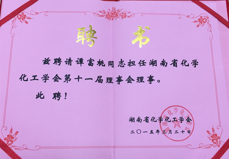 近日,经过推荐评选,湖南省化学化工学会公布了第十一届理事单位和理事名单。我校当选湖南省化学化工学会第十一届理事单位,谭富桃老师当选湖南省化学化工学会第十一届理事会理事。