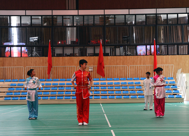 随着一阵激扬的音乐响起,我校健美操队和武术队师生先后闪亮登场,展示校本课程建设成果。健美操队员动作整齐,激情四射,绽放出靓丽的青春风采。武术队师生拳掌刀剑,样样娴熟,宛如一位位“武林高手”。