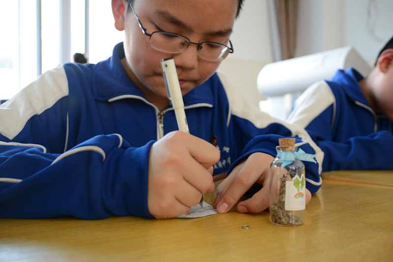 请每位同学在自己写好自己的愿望,放进许愿瓶。