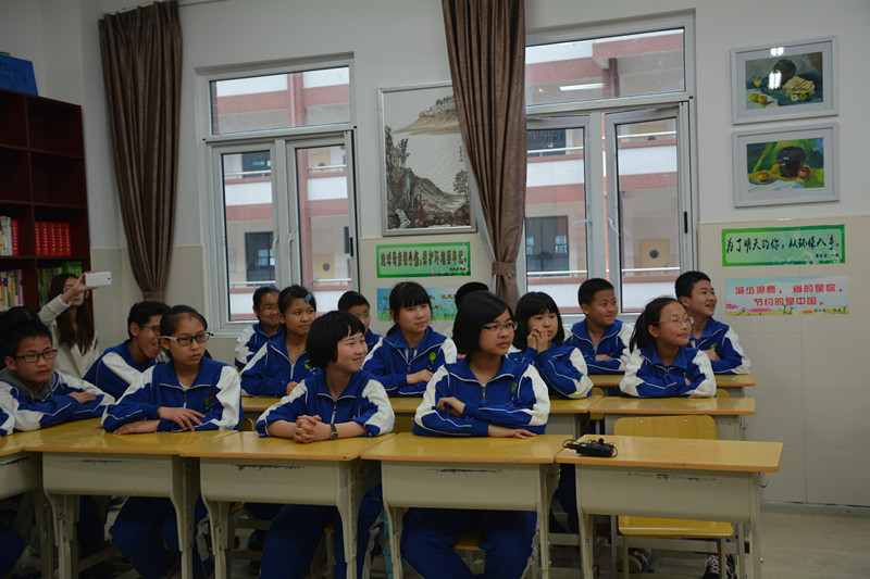3. 表演手语《地球的孩子》时,学生们一起齐唱,很专注。