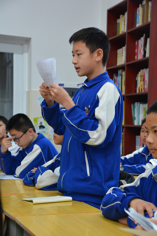 吴菲老师是我班的主评人,其中学生精彩的表演及激烈的辩论都给她留下了很深的印象,吴老师说辩论的开始还是照着稿子读,慢慢的大家开始个述己见,同学们进入了状态,所以学习的过程本身是很慢热的,慢慢的大家进入了状态才能找到方向。而本身这个话题就是老话题了,能有所突破较难,但目的还是达到了,如果能在认识后继续讲讲如何解决的话题就更全面更完整了。