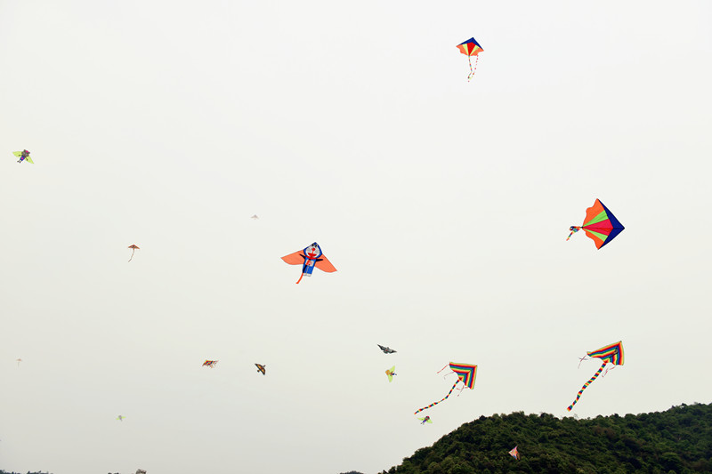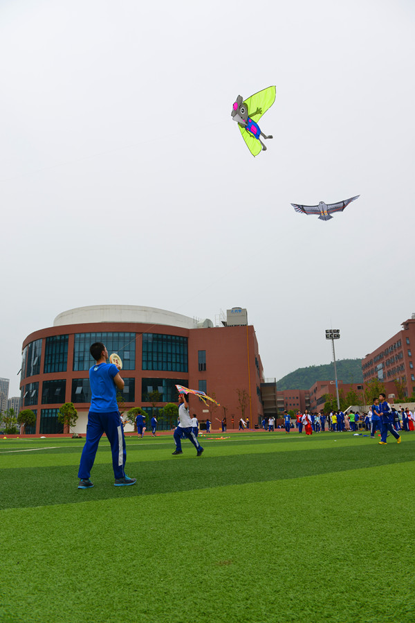 最后,风筝社邀请全校同学一起参加放风筝大赛。他们将自制或购买的五颜六色的风筝放上了蓝天,桃花岭下的田径场,顿时成了一片欢乐的海洋。