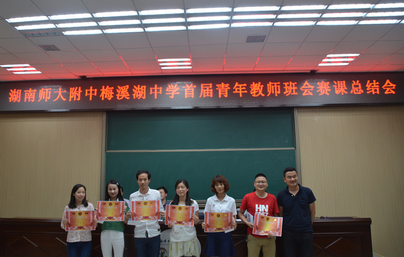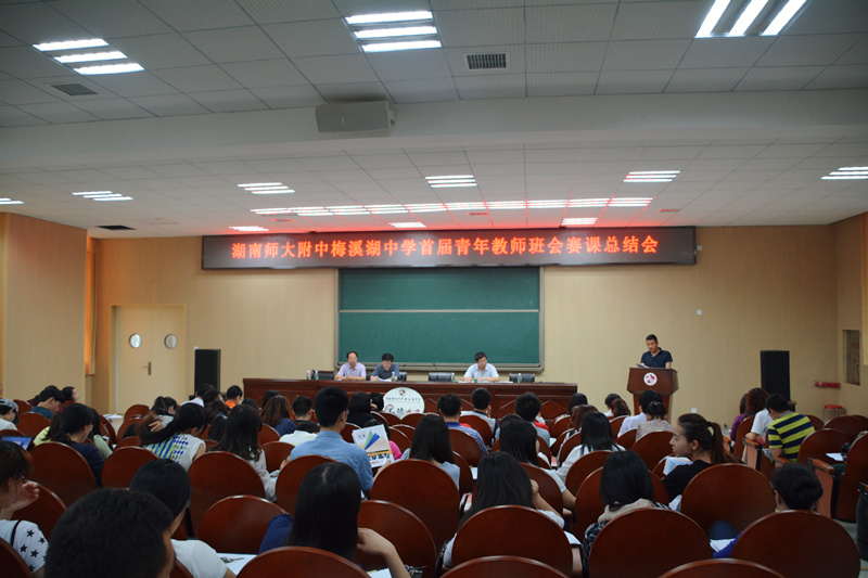 5月25日下午,学校首届青年教师班会赛课总结会在教学楼三楼阶梯教室举行。校长彭荣宏,副校长莫晖、胡惠出席会议。