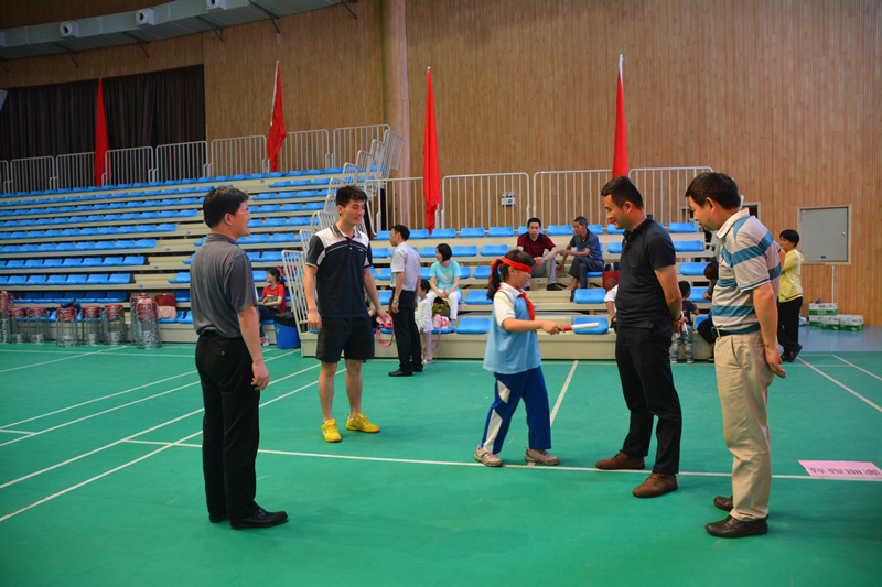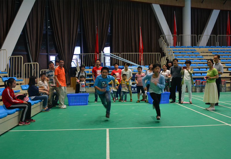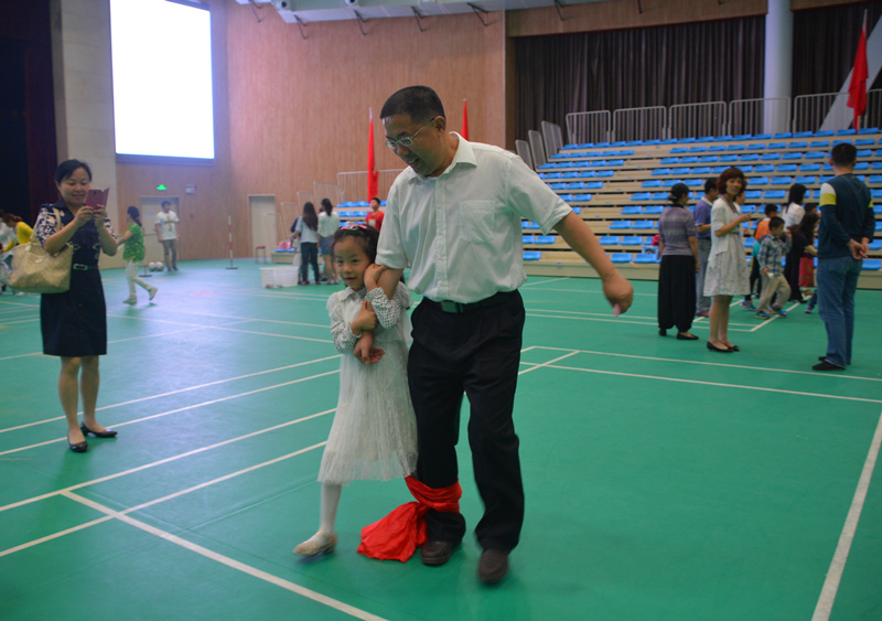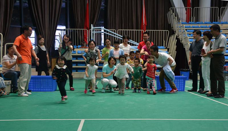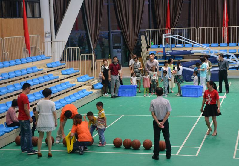 会后,大家前往体艺馆三楼礼堂参加亲子运动会。亲子运动会设立了搬物游戏、蒙眼敲锣、掷球游戏、跳绳比赛、射门比赛、套圈圈等趣味运动项目。小朋友们个个兴高采烈,教职工们也热情参与,整个体艺馆成了一片欢腾的海洋。