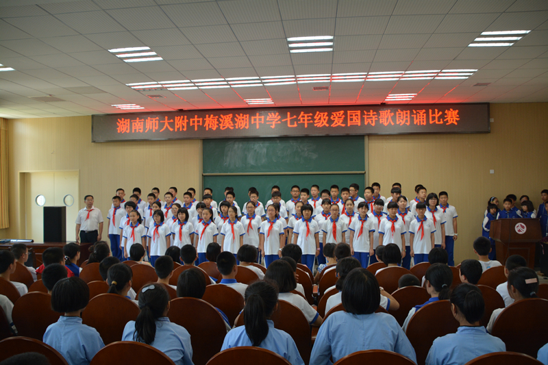 6月12日中午,七年级 “爱国主义”诗歌朗诵会在B、C栋三楼阶梯教室举行。副校长莫晖,七年级组长吴菲老师、副组长杨庆芬老师出席活动。语文组教师李泉、马晴晴、刘婷、宋珍、李萌、郭薇、陈林梦等出席活动并担任比赛评委。