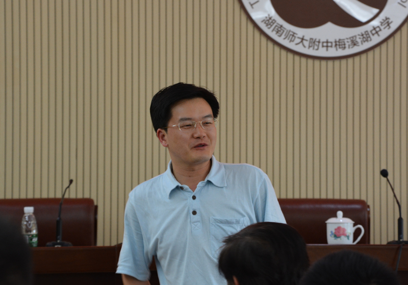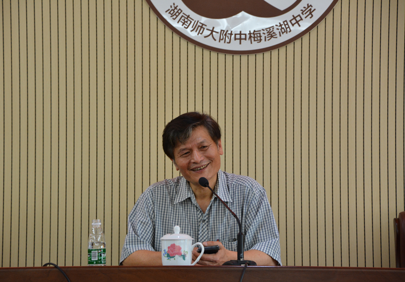 随后,湖南师大附中语文教研组原组长、师大附中博才中学学术委员会主任汤正良就“如何做一名优秀的语文老师”作专题讲座。我校教务处主任张迪平主持讲座。