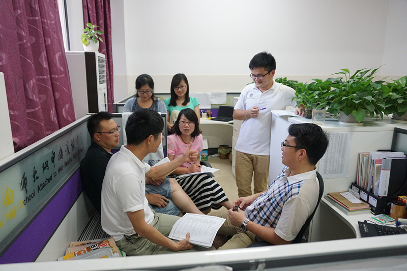 课后,各科组长对青年教师的汇报课进行了点评,他们纷纷认为几位老师教学基本功扎实,教学思路较清晰,能从学生特点出发,让学生在学习过程中探究新知、理解新知,在教学过程中给予了学生比较充分的自主探究机会,让学生在活动中学习、提升。参与评课的其他老师也进行了广泛而深入地讨论与交流。
