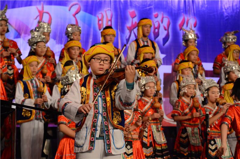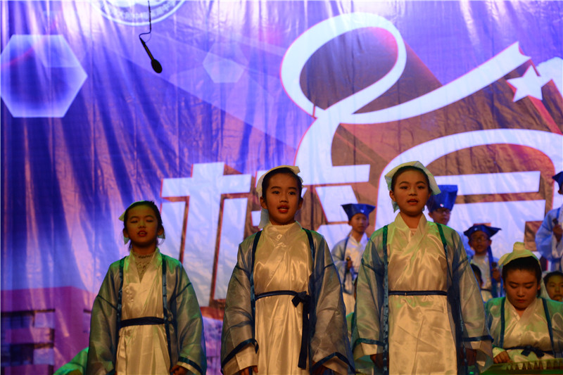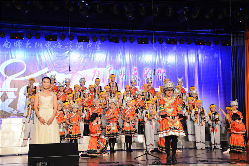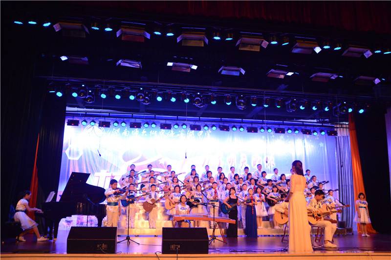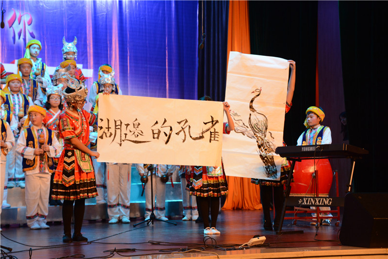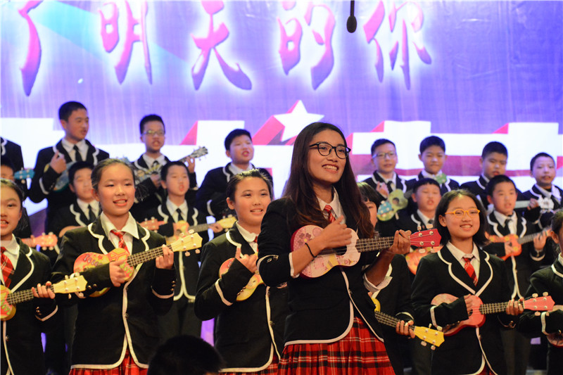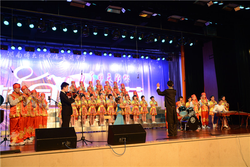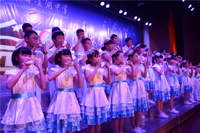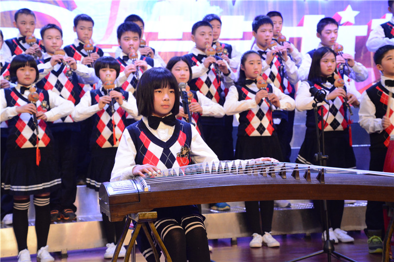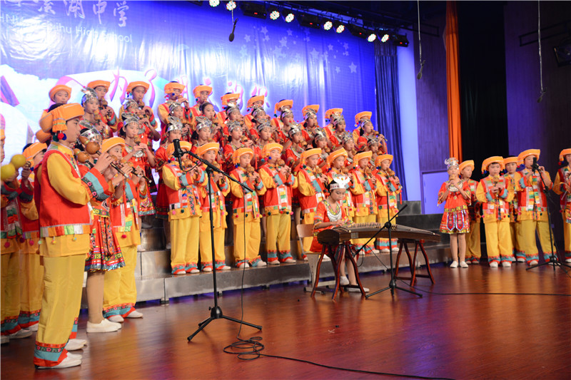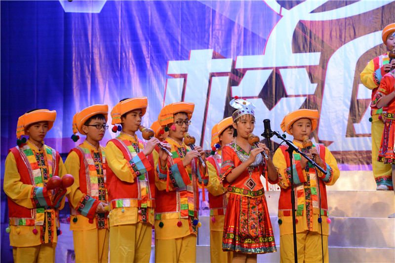 器乐大赛以葫芦丝、陶笛、吉他等为主要表现乐器,其中融入了众多的西洋乐器和民族乐器,如古筝、钢琴、小提琴、大鼓等。参赛节目在舞台形式和节目编排上做了精心的设计,将朗诵、舞蹈、歌唱等元素有机地结合了起来,可谓精彩纷呈。班主任和任课老师的参与更是掀起了一个又一个的高潮,有当指挥的,有弹吉他的,有弹钢琴的,还有的深情吹奏陶笛。