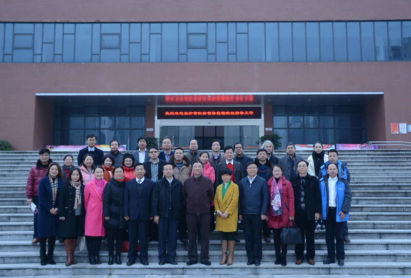 12月23日下午,政协长沙市委员会文教卫体和文史委员会主任陈忞、长沙市教育局原副局长李枫、长沙市教育局副局长孙传贵一行来校考察指导工作。党总支书记钟慧莉、副校长胡惠热情接待了客人一行。