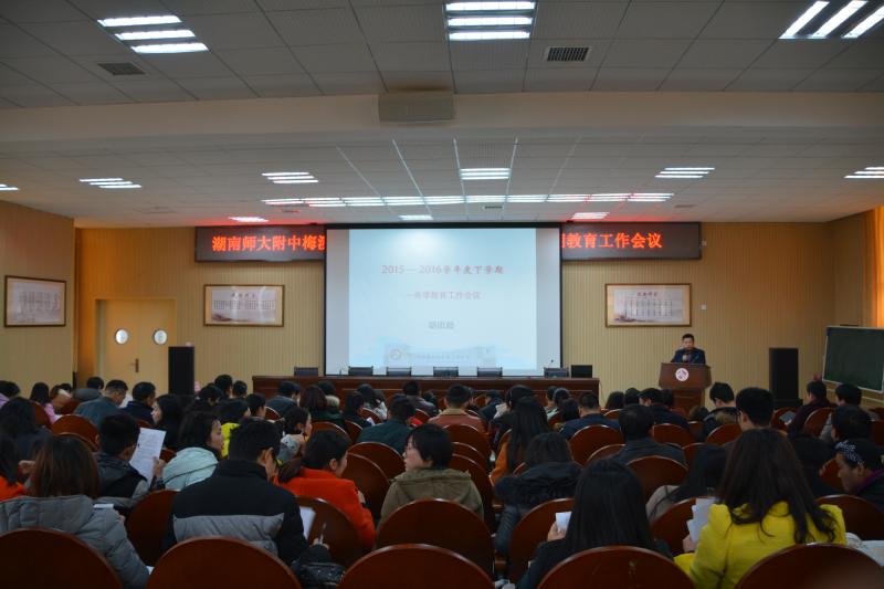 220日下午,我校2015-2016学年第二学期教育工作会议在教学楼三楼道德讲堂举行。副校长张志、学工处主任胡田超、团委书记罗煦洁、教科室副主任李湘黔、保卫处副主任兼学工处副主任胡海军等出席会议。年级组长、年级党支部书记、班主任、副班主任、学工处及保卫处全体人员参加了会议。会议由胡海军主持。