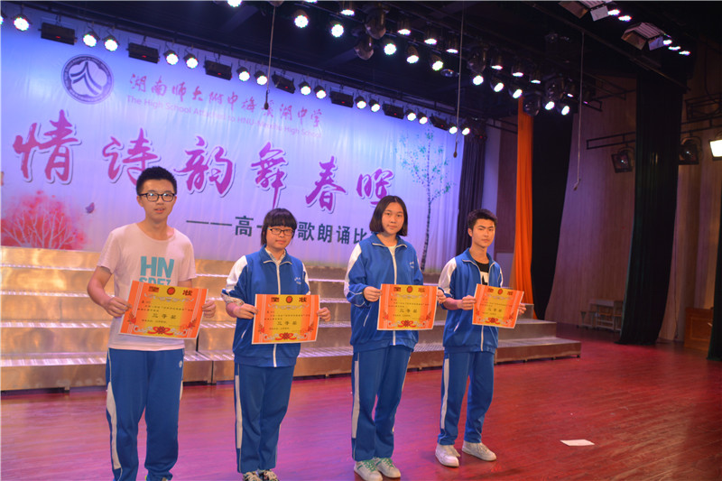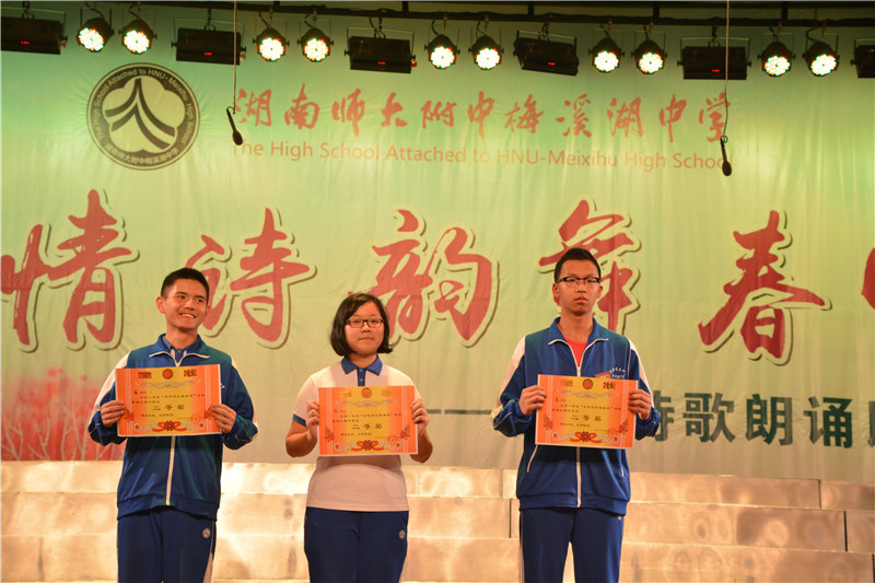 9个班级别出心裁,展示了风格各异的精彩节目。他们或意气风发,或深情款款,尽情渲染青春,讴歌生命,咏赞学校,憧憬未来。一首首慷慨激昂、感人至深的诗歌让在座的所有师生、家长接受了一次心灵的荡涤,博得了在场观众阵阵喝彩。最后,此次诗歌朗诵比赛以漉泉文学社吟唱的诗歌《诗经•小雅•蓼莪》和高一语文组教师朗诵的《致大海》特别节目落下帷幕。比赛最终产生一等奖2名,二等奖3名,三等奖4名。