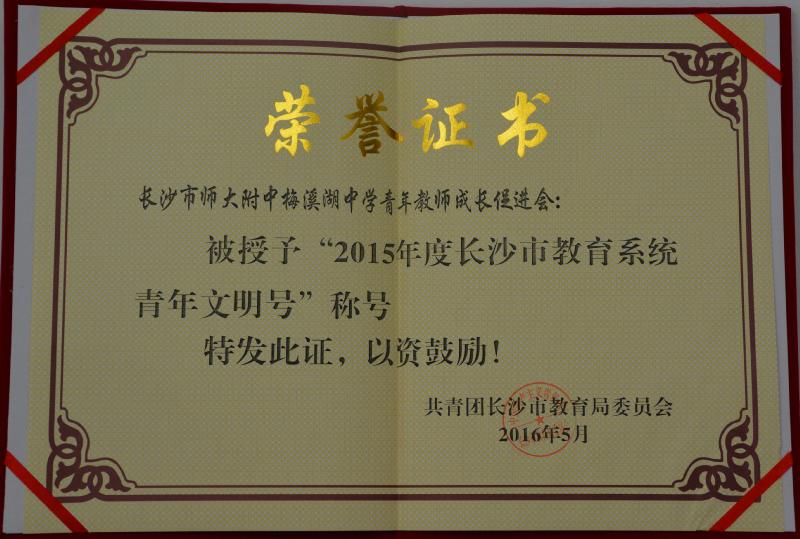 喜报:我校青年教师成长促进会荣获“长沙市教育系统青年文明号”称号 来源:团委 发布时间:2016-04-29 16:04:25 浏览次数: 次 【字体:小 大】 为表彰先进,树立典型,进一步推动教育系统青年文明号创建和管理工作的深入开展,经我校申报,市教育局团委审批,并报局党委同意,我校青年教师成长促进会被授予“长沙市教育系统青年文明号”称号。 分享到: 【打印正文】