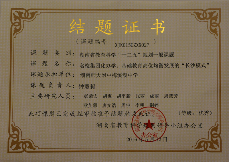我校主持研究的湖南省教育科学“十二五”规划课题成功结题并被评为优秀