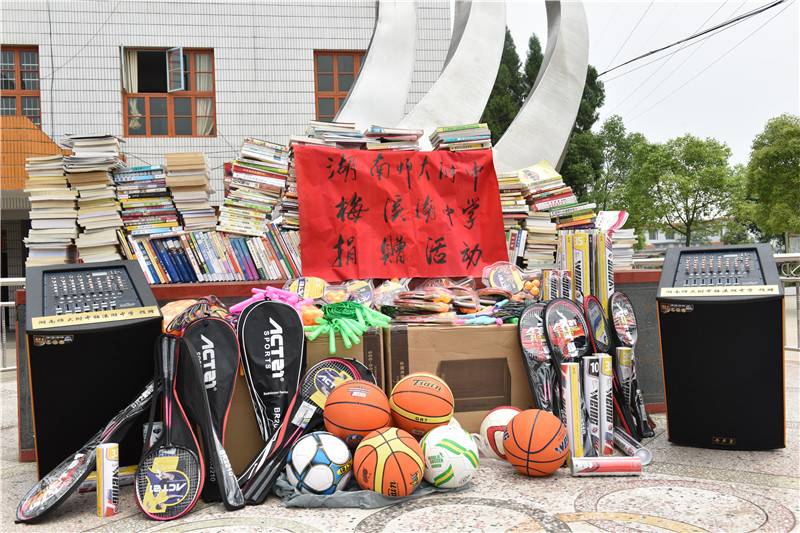 随后,彭荣宏代表我校给湾头镇中学捐赠了书籍、体育用品和音响。