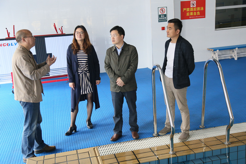 招聘会后,在师大体育学院办公室主任胡文烨的陪同下,彭荣宏一行参观了该院的标准化游泳馆,并就我校游泳馆的建设进行了交流和请教。