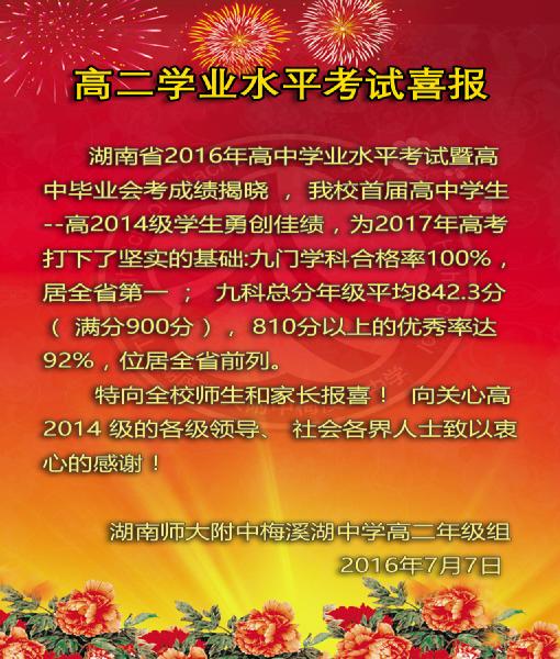 高二学业水平考试喜报