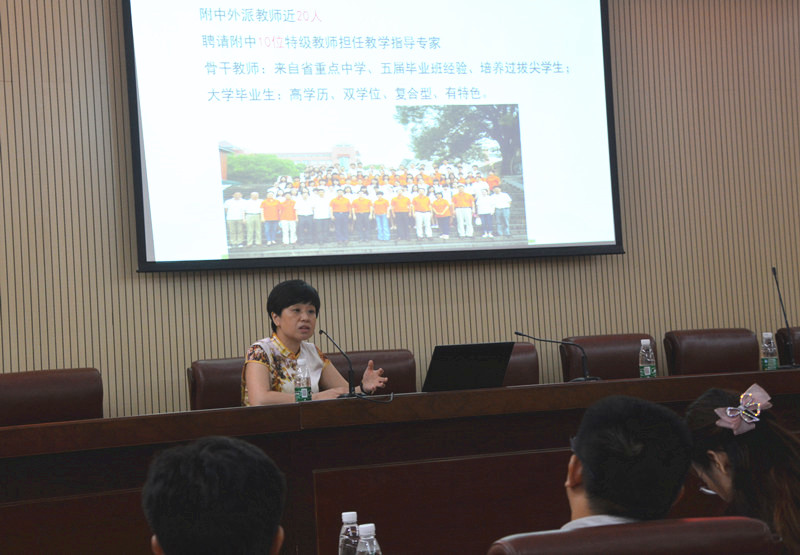 8月5日下午,湖南师范大学文学院副院长彭万福带领湖南省未来教育家高端项目研修班40余名学员来我校考察交流。党总支书记钟慧莉,团委书记罗煦洁热情接待了客人们。